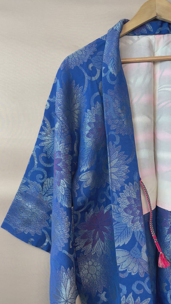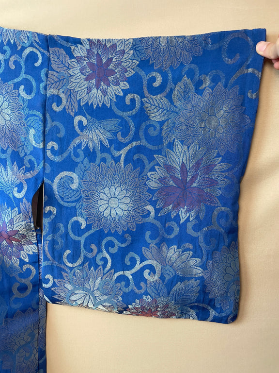 Haori Blue Jacquard with Embroidered Metallic Flowers