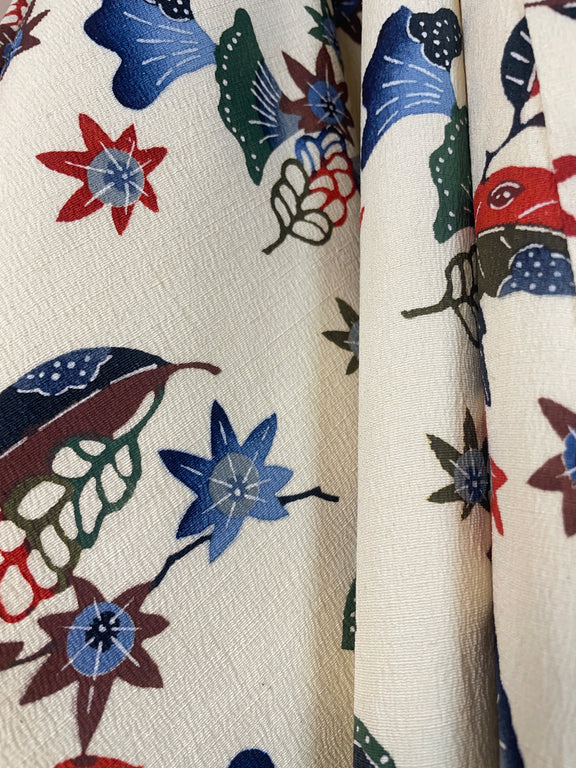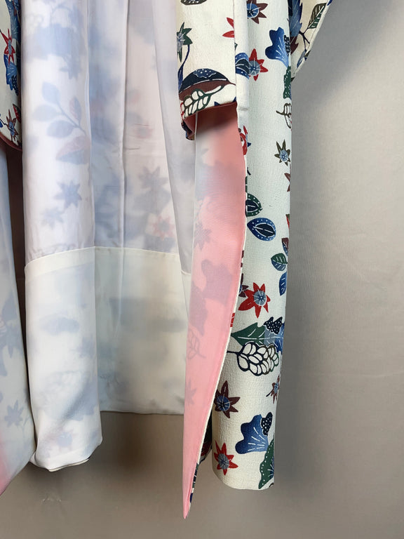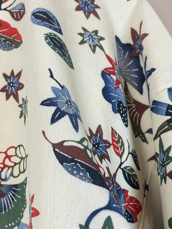 Kimono Off White Crepe with Stencil Dyed Plants