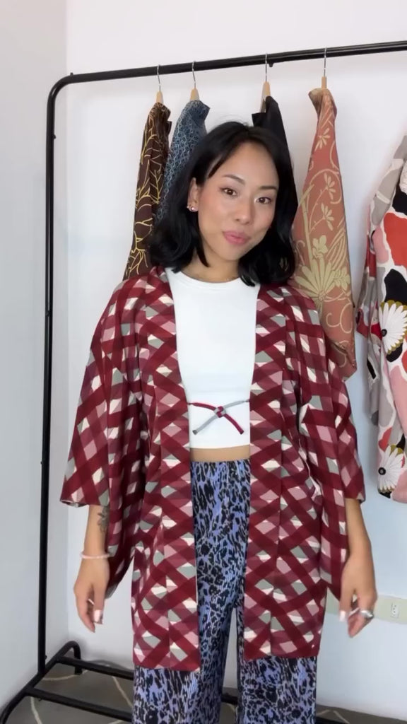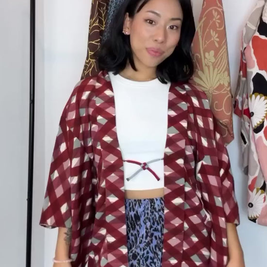 Haori Wine Checkered Watercolor