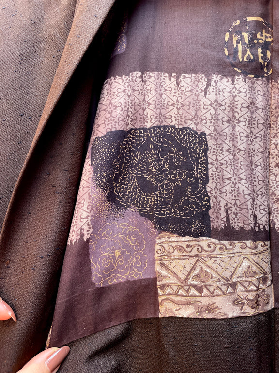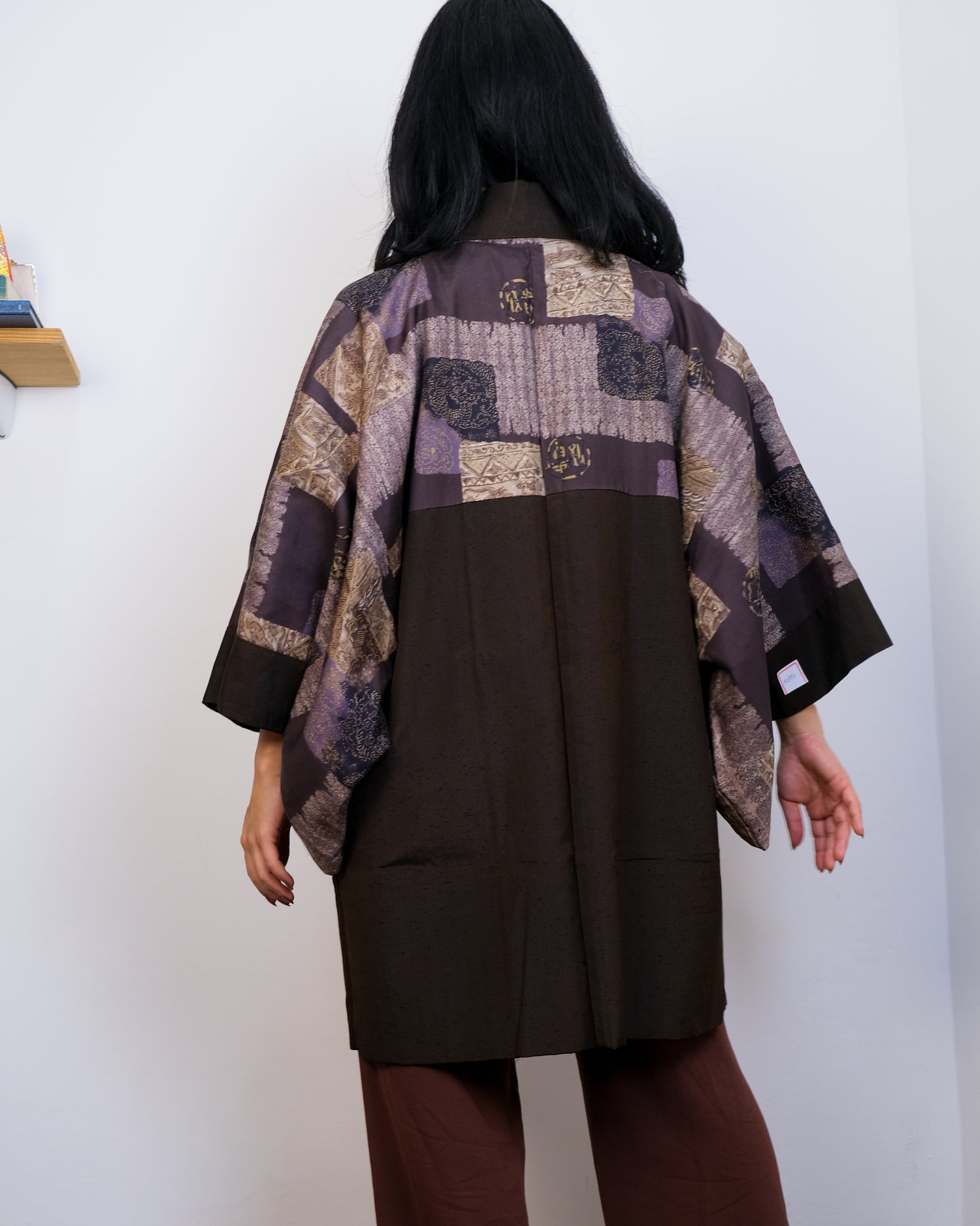 Men’s Haori Jacket in Brown Tsumugi Silk